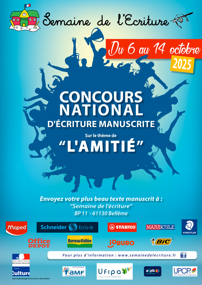 Des élèves de CM2 participent à un concours d’écriture, ouvert à tous. Le thème de cette année est : l’amitié. https://www.semainedelecriture.fr/index.php/le-concours-2 Pour participer en tant que particulier, voici les modalités d’inscription :